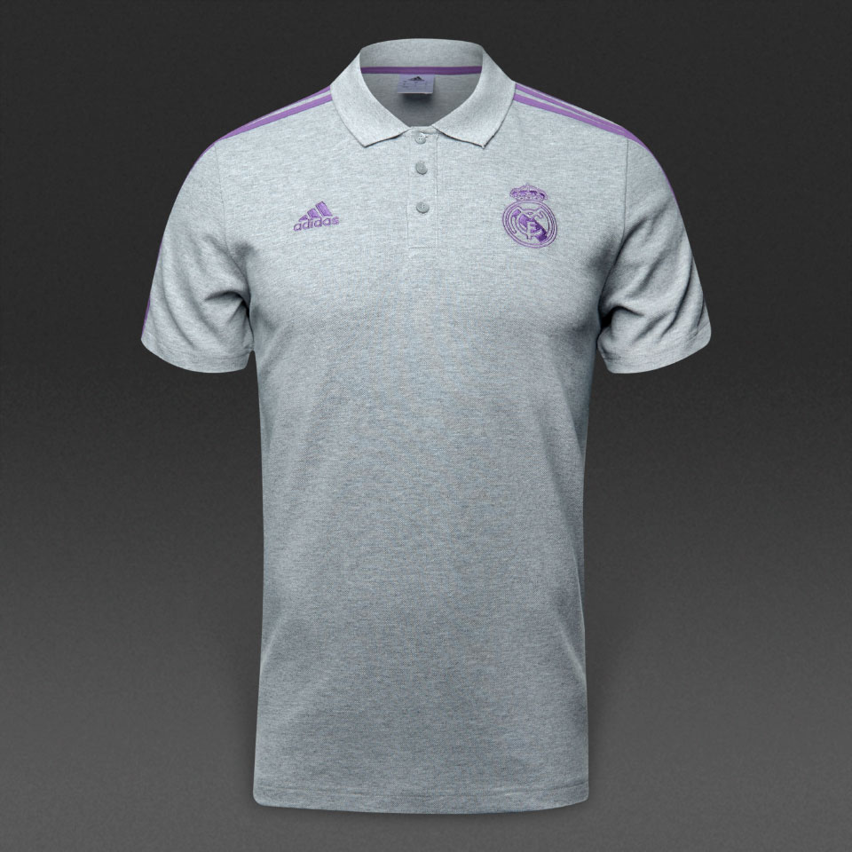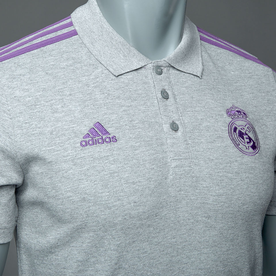 مدل adidas Real Madrid 16/17 3 Stripe Polo - Medium Grey Heather/Ray Purple - az5362