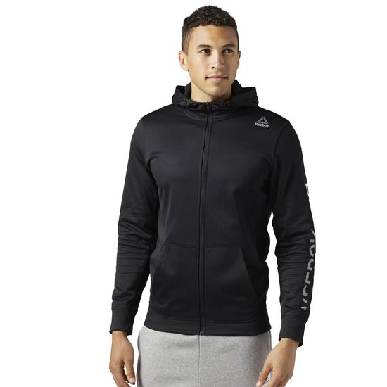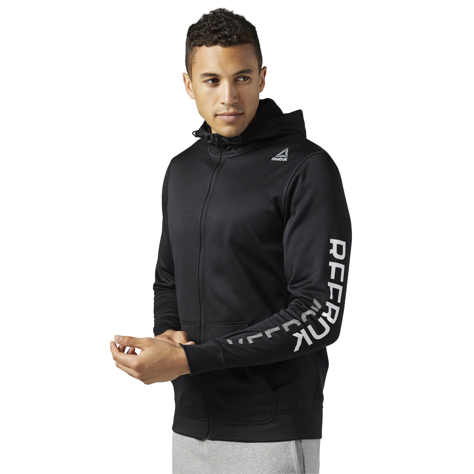 مدل Reebok - Men Fitness Workout Ready Graphic Full Zip Fleece Hoodie Black BR7761